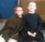 First graders Audra Spencer and Maddie Stubbers both liked the St. John Bosco skit the best. "They tricked us!" said Maddie. Audra added, "They hid a penny from us." St. John Bosco was a priest in Italy in the 1800's. He learned circus stunts such as magic tricks and juggling which he performed for street children. After the show he invited the children to pray with him. He helped secure honest work and lodging for the boys on the street, providing housing for over 800 boys by the 1860's. St. John Bosco is the patron saint of school children.